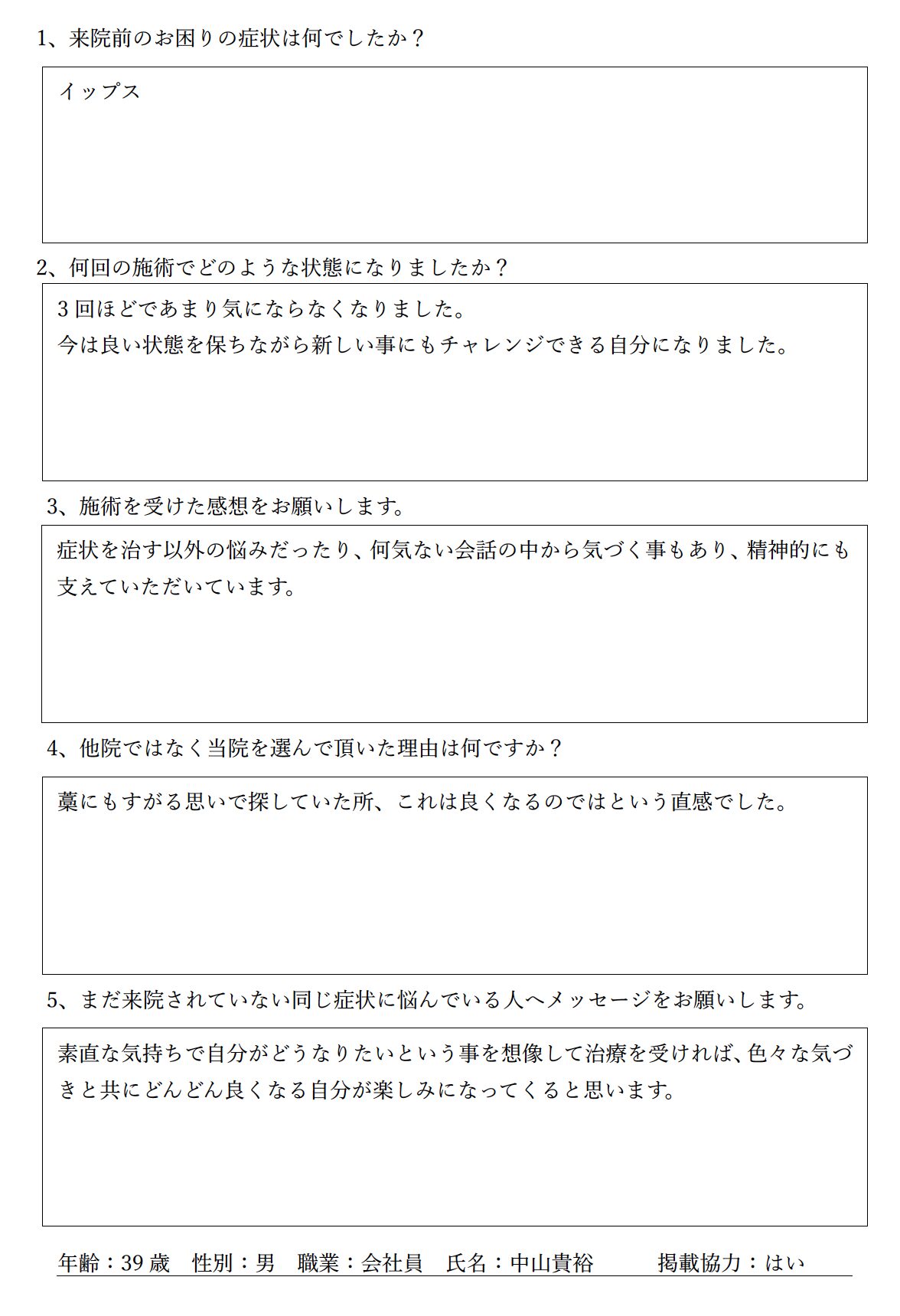 ✅ 3回の施術で改善し、新しいチャレンジができるようになった