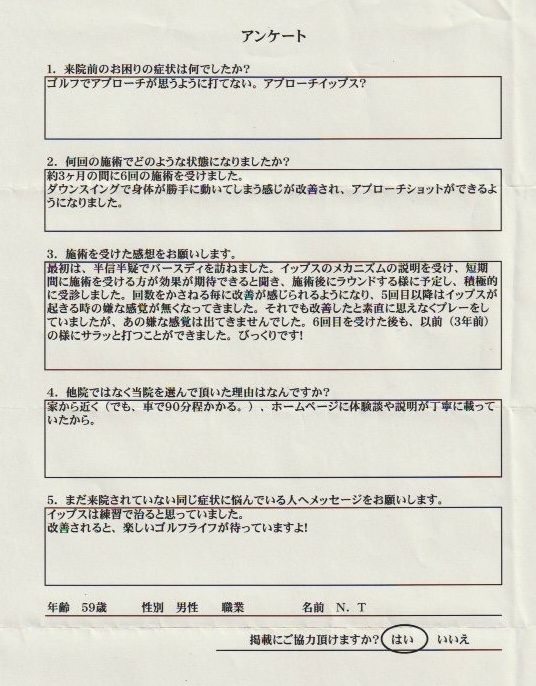 ゴルフのアプローチイップス6回の施術で改善|喜びの声